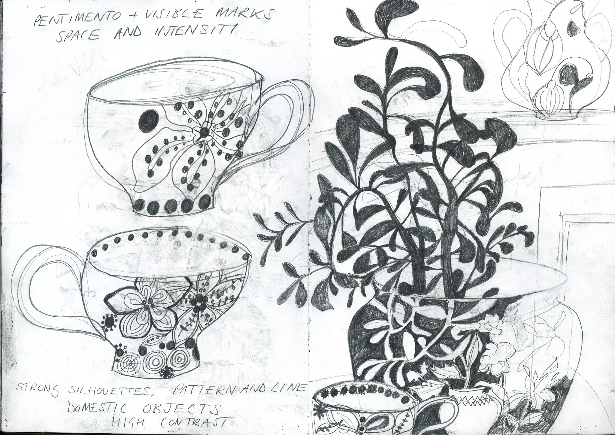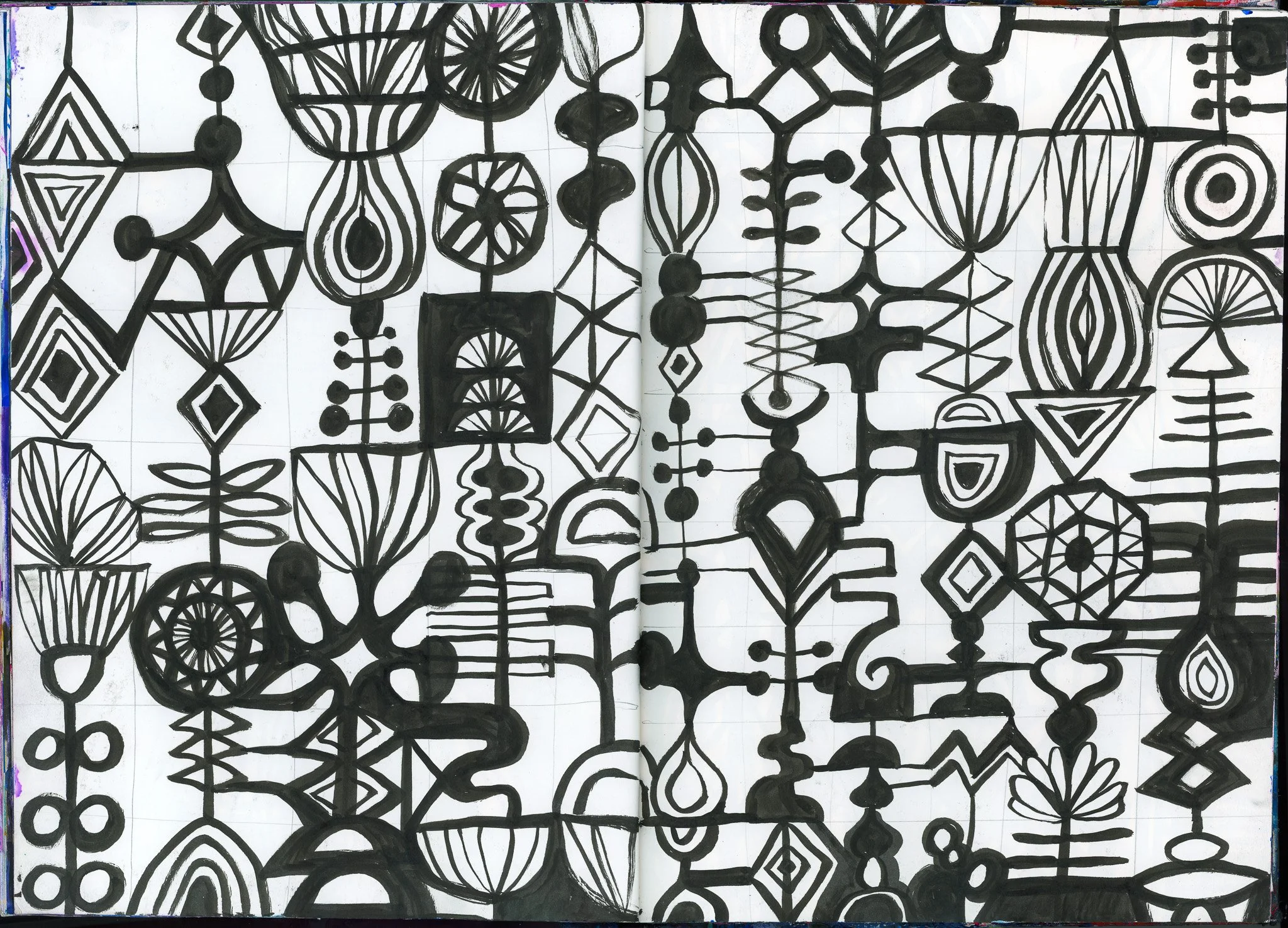 Pencil drawn sketchbook pages
