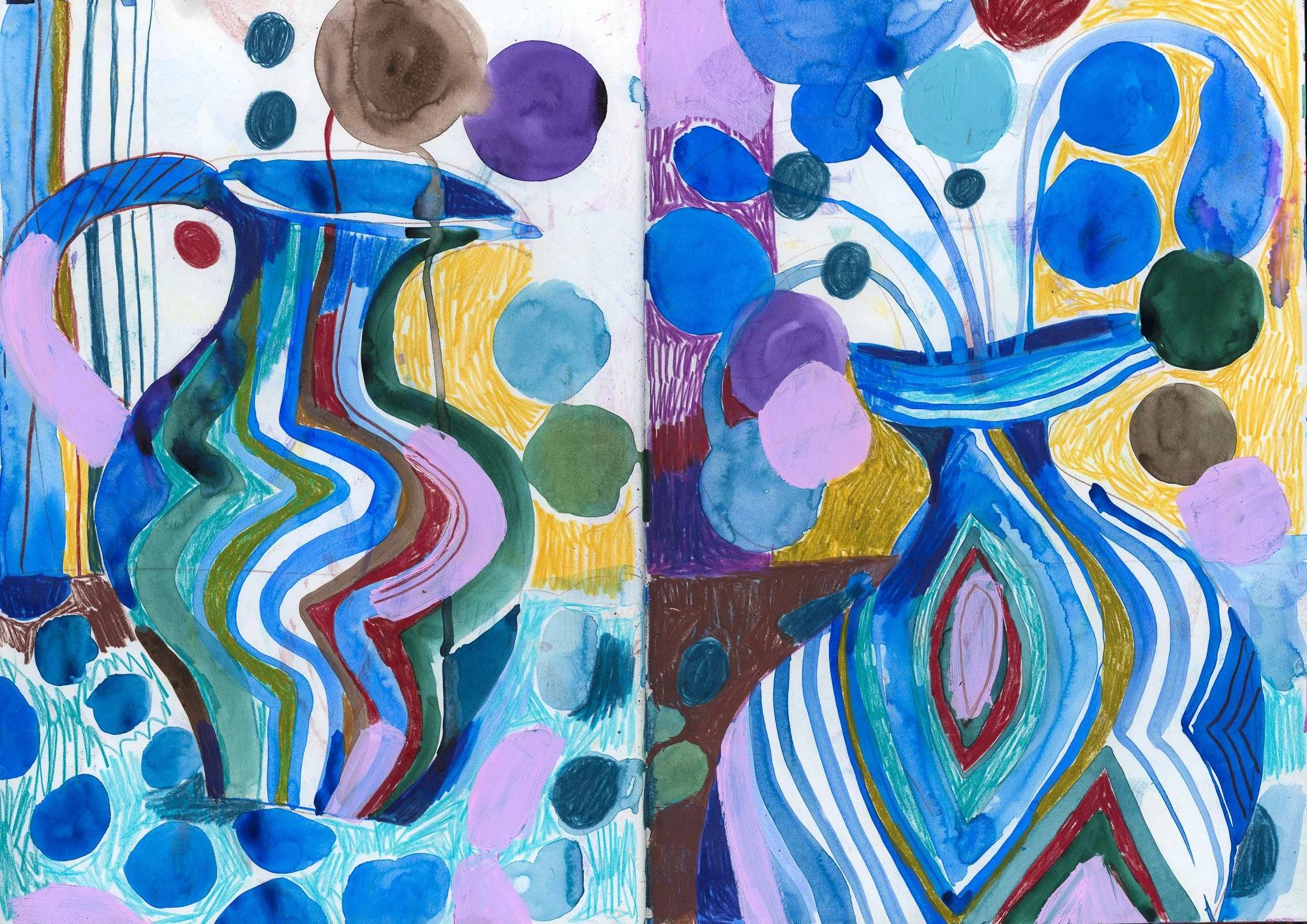 Sketchbook pages made with acrylic paint