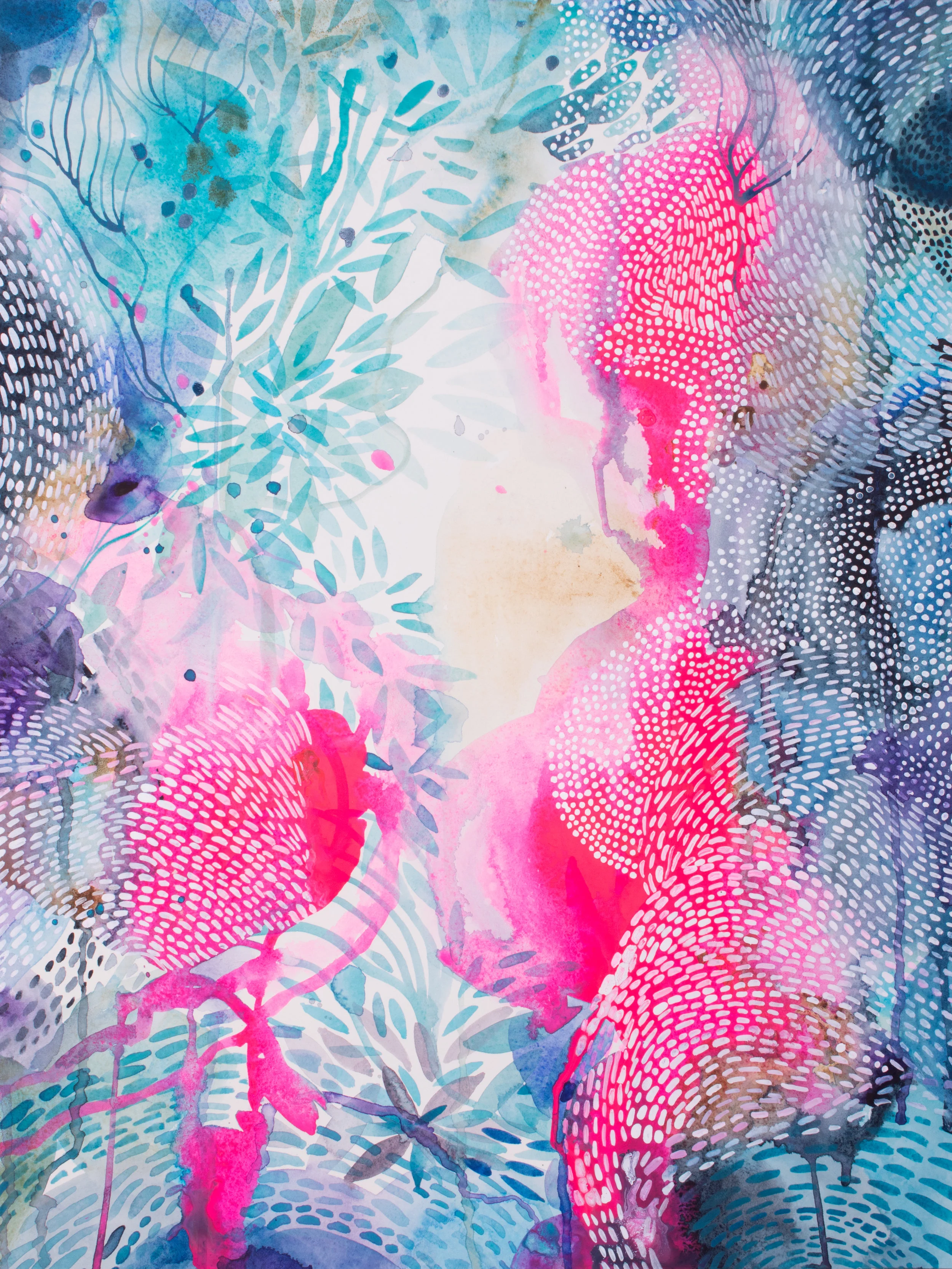 The process of creating art has ignited multiple and diverse love affairs for ancient textiles, seaweed, fossils, found patterns, painted ceramics, trees roots, sacred geometry, weeds, patterned rugs, reflections on water, hand embroidery, folk art, iridescence....